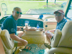 On day 2 of my lessons, Paul had me backing up our 45 ft coach in a straight line for 500 feet. He was very complimentary on my accomplishment. We then drove to the old residential part of town, where the streets were narrow and many cars parked along the curb. I was very anxious, but by using the tips Paul had taught me, and with his encouragement, I was able to drive in a “real time” situation. I felt very proud of myself! Lastly, Paul taught me how to easily back into an RV site by using the pivot point on the coach.
